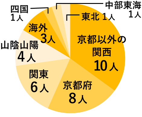 大学が京都という社員も多いですが京都以外の出身者が意外と多いです!