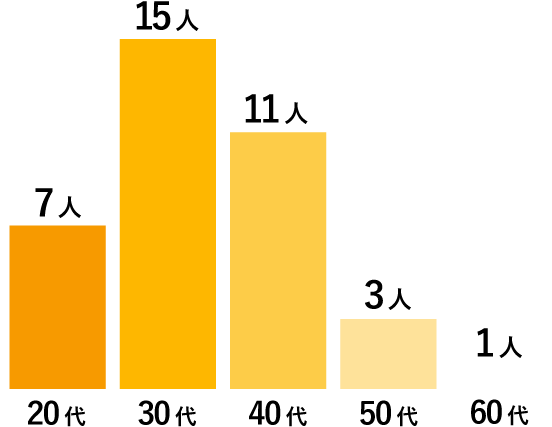 77%様々な経歴をもつ社員が集まり、それぞれの得意分野でこれまでの経験を活かしアイディアを出し合っています。