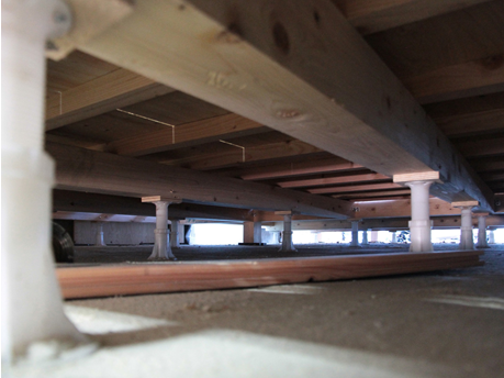 昔ながらの町家に見られるような、空気の流れを一定確保し、床下の温度・湿度を調整する「建物にやさしい仕様」 という利点を残して取り入れています。