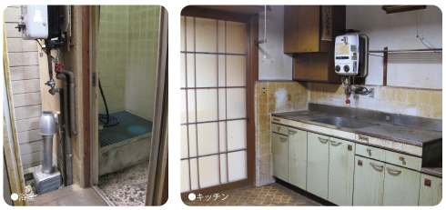 キッチンは汚れが目立ちますが、給湯器も含めレトロでいい雰囲気。