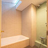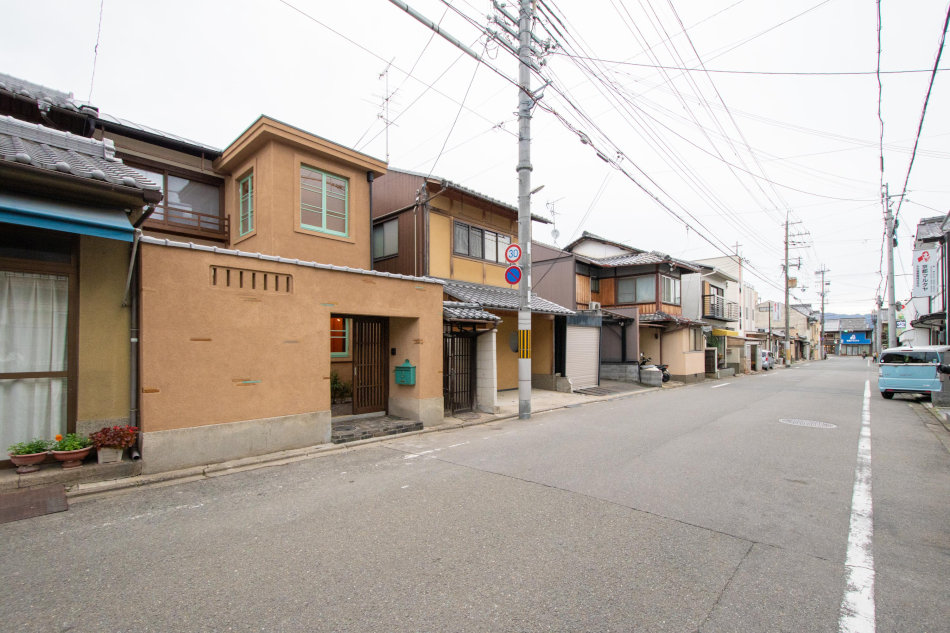 掻き落としで丁寧に仕上げられたベージュの壁面に、