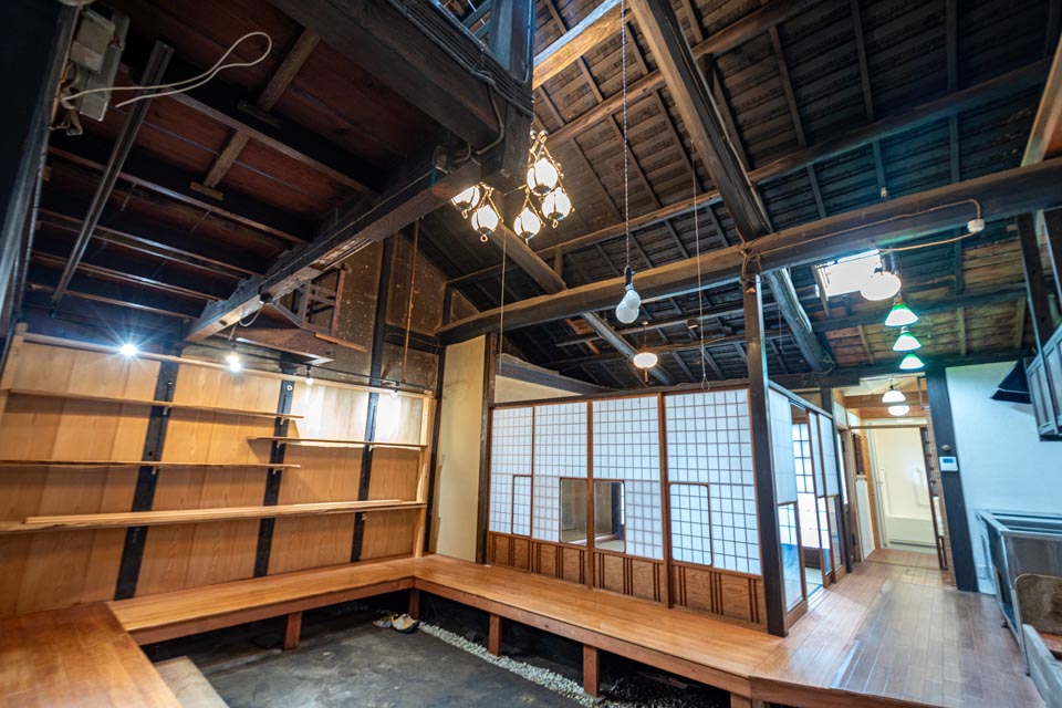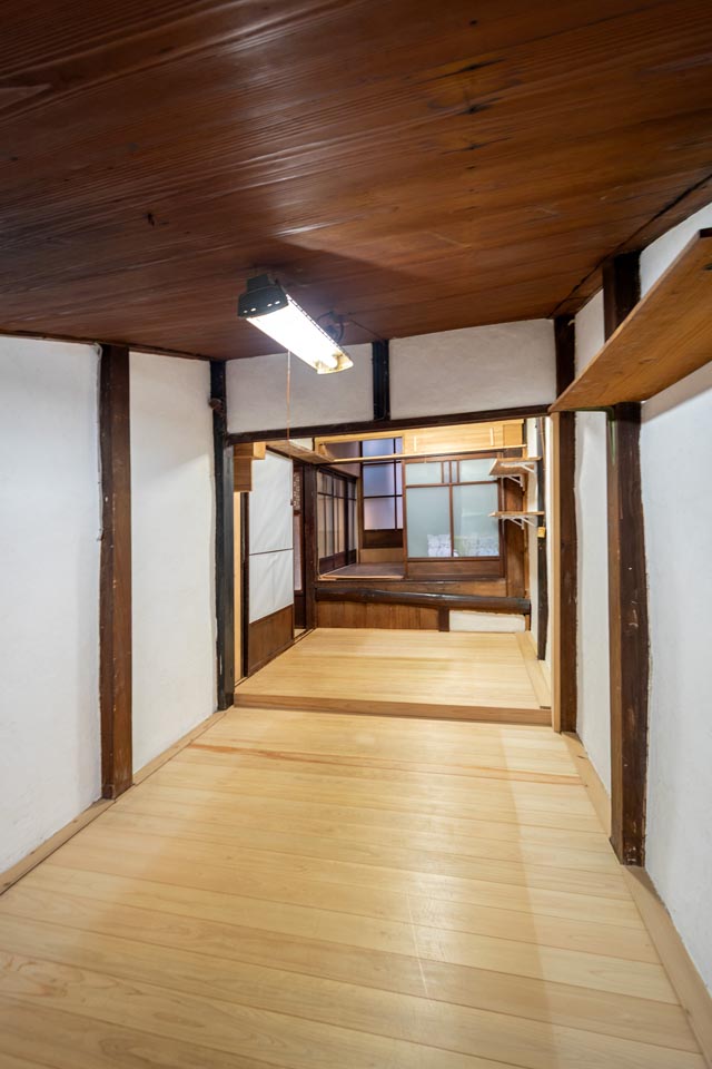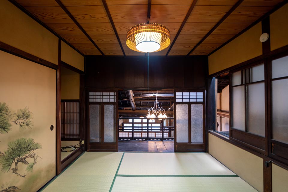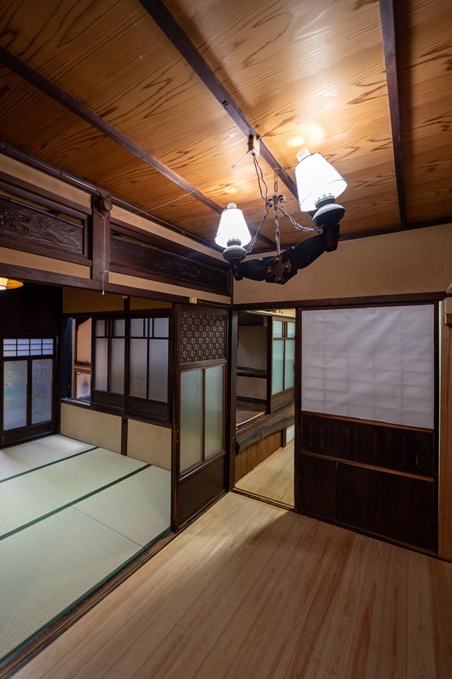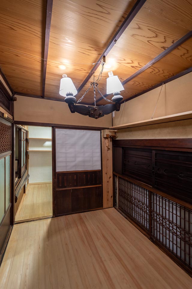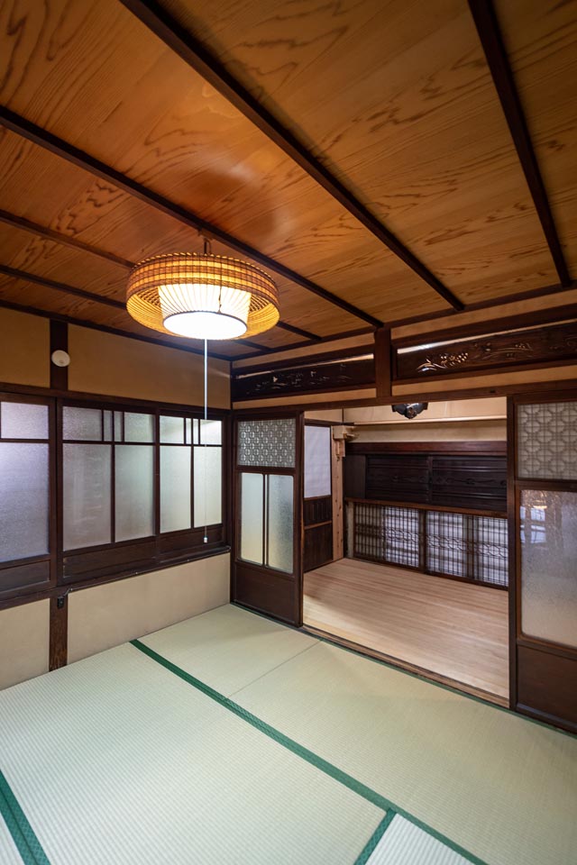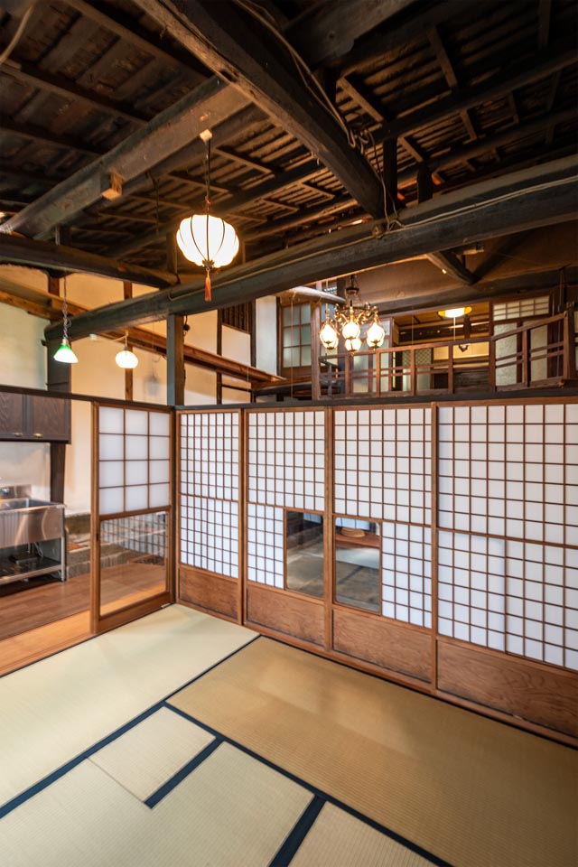 室内はそれぞれ独立した空間でありながら、連続性が感じられ、建具を開けると風が通り抜ける心地よい空間が現れます。 かつての趣を残しつつ、高さと広がりを備えた、魅力あふれる町家です。