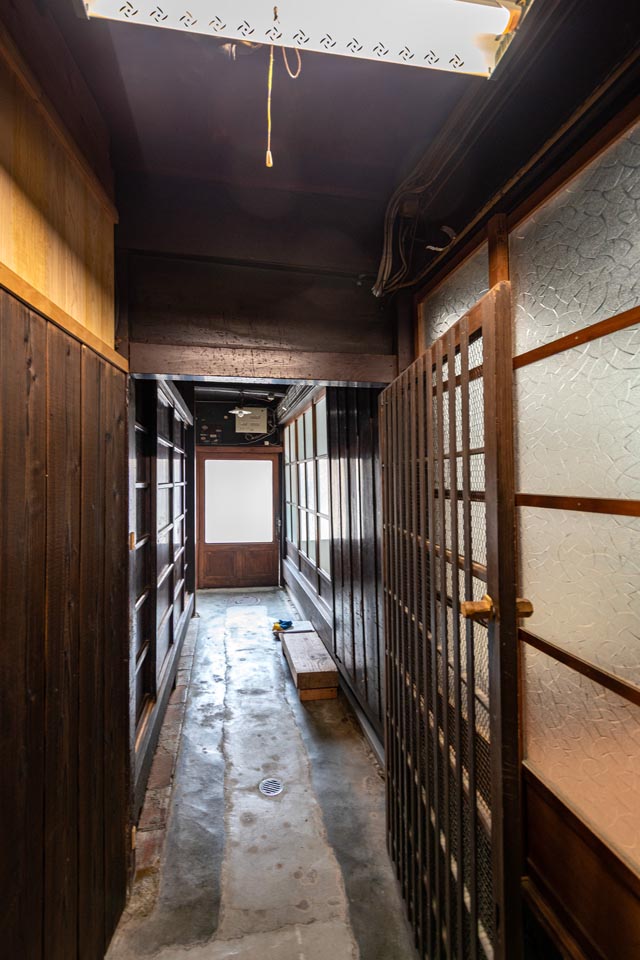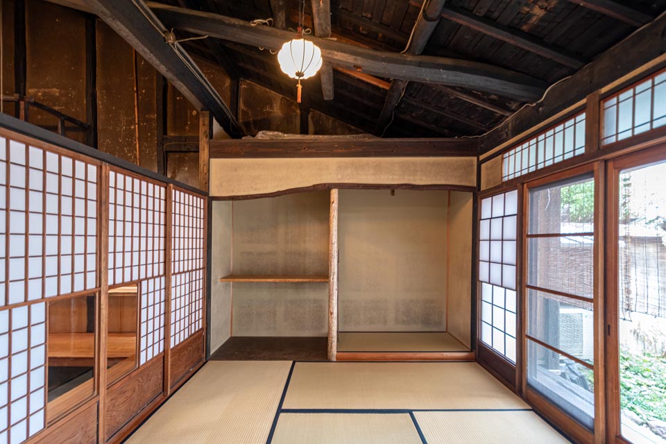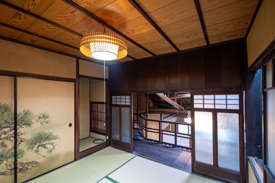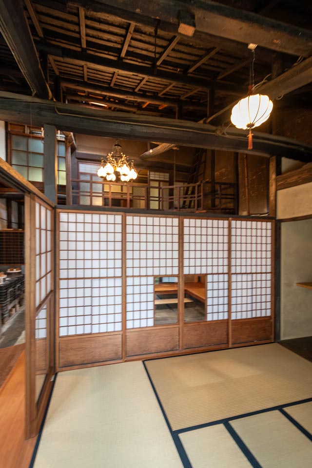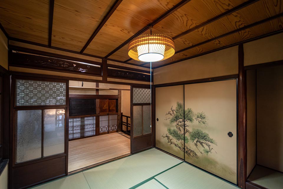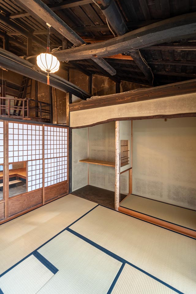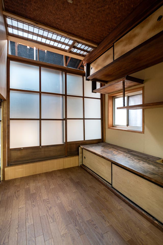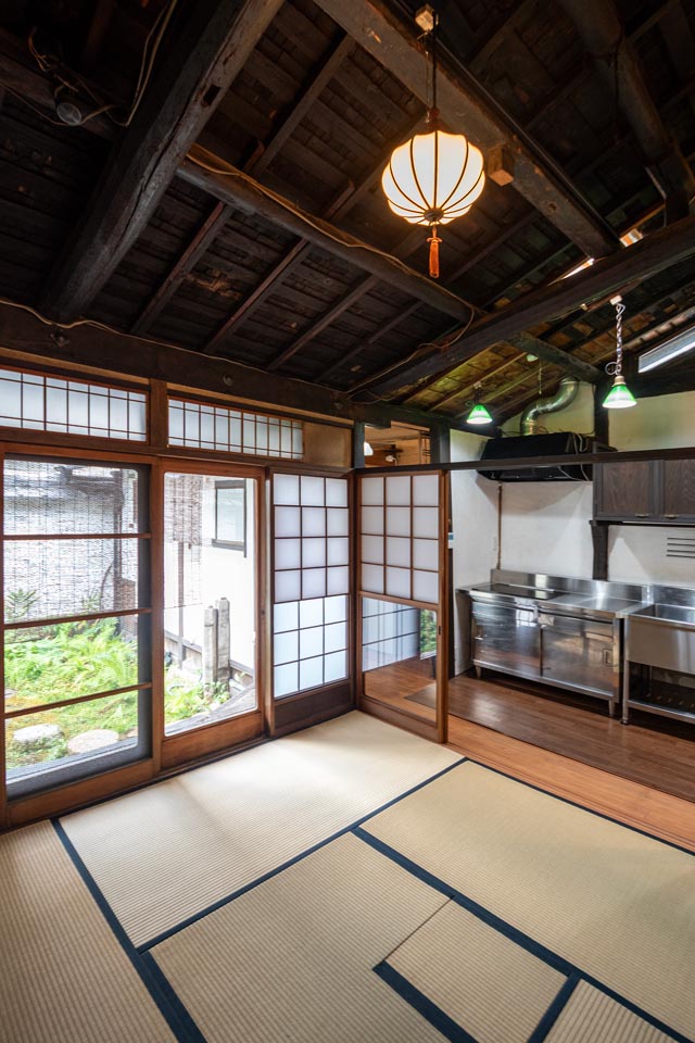 室内はそれぞれ独立した空間でありながら、連続性が感じられ、建具を開けると風が通り抜ける心地よい空間が現れます。 かつての趣を残しつつ、高さと広がりを備えた、魅力あふれる町家です。