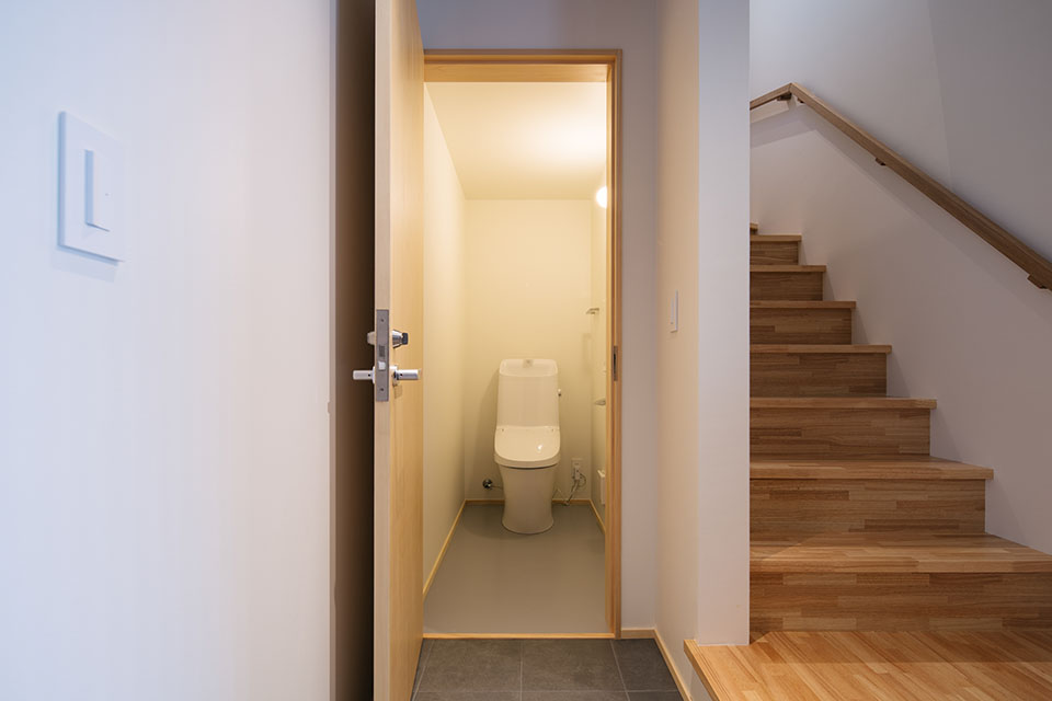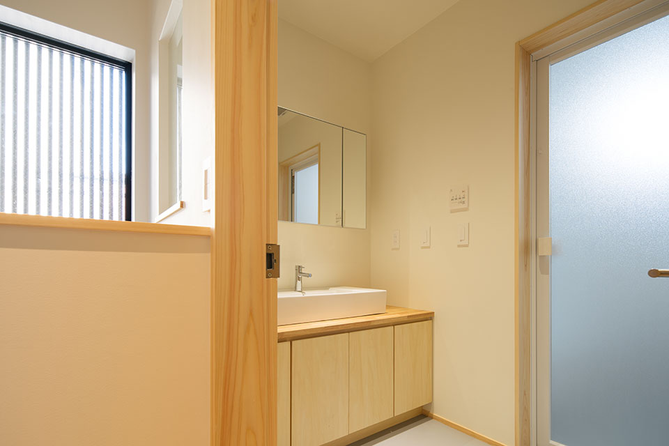 明快なゾーニングと、奥行きと高低差による「空間のリズム」が、住まいの印象を心地よく引き立てます。