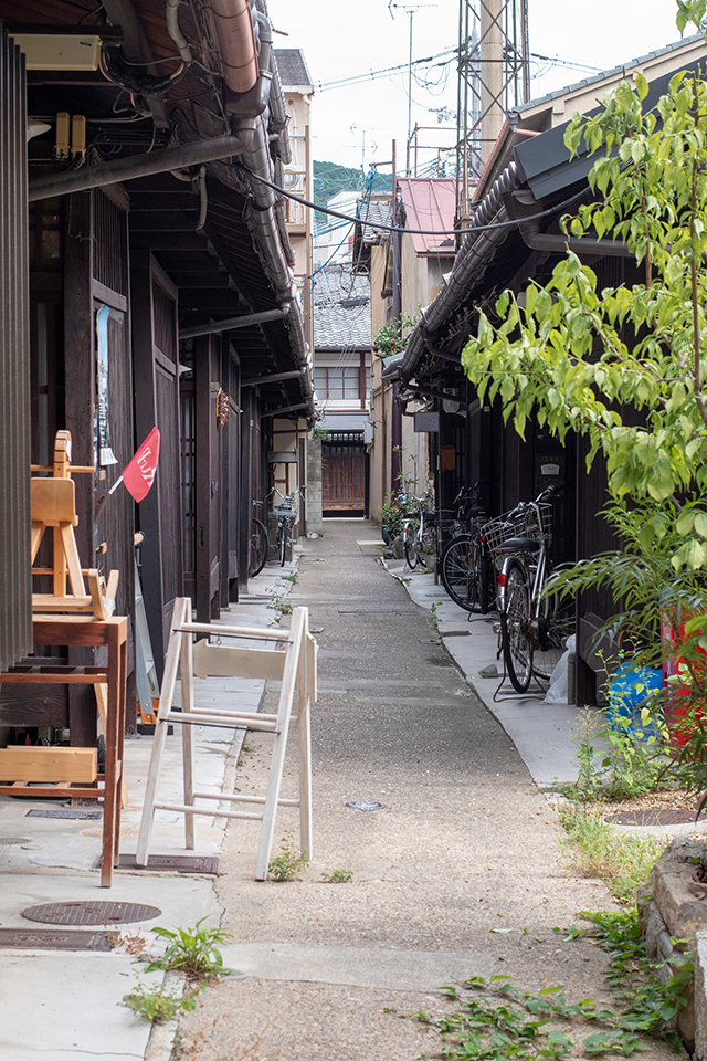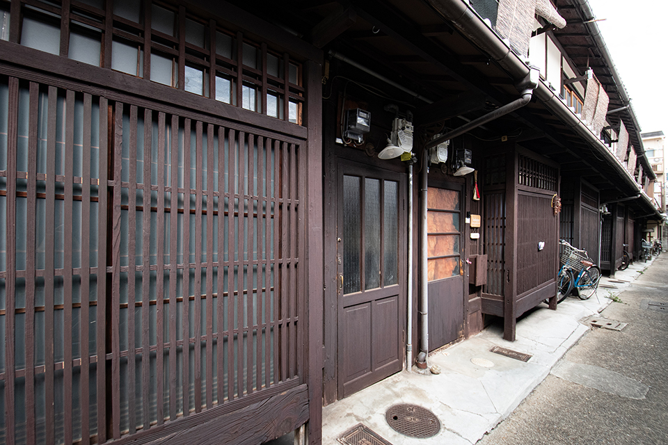 長年、空き家の状態が続いていた長屋路地に転機が訪れたのは2004年のことでした。名もなき作家や町家にあこがれる若者と大家が力を合わせ、活気が失われた家々を見事に甦えらせることに成功しました。