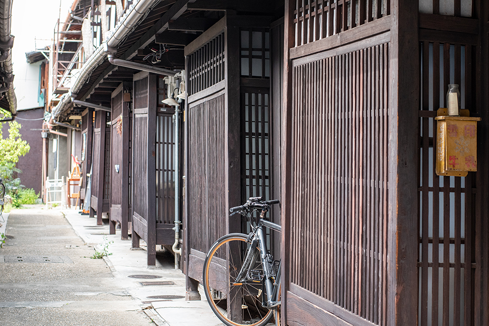 昔ながらの長屋が並ぶ細い路地。映画や漫画のロケ地にもなり、路地人気の先駆けとしても知られています。