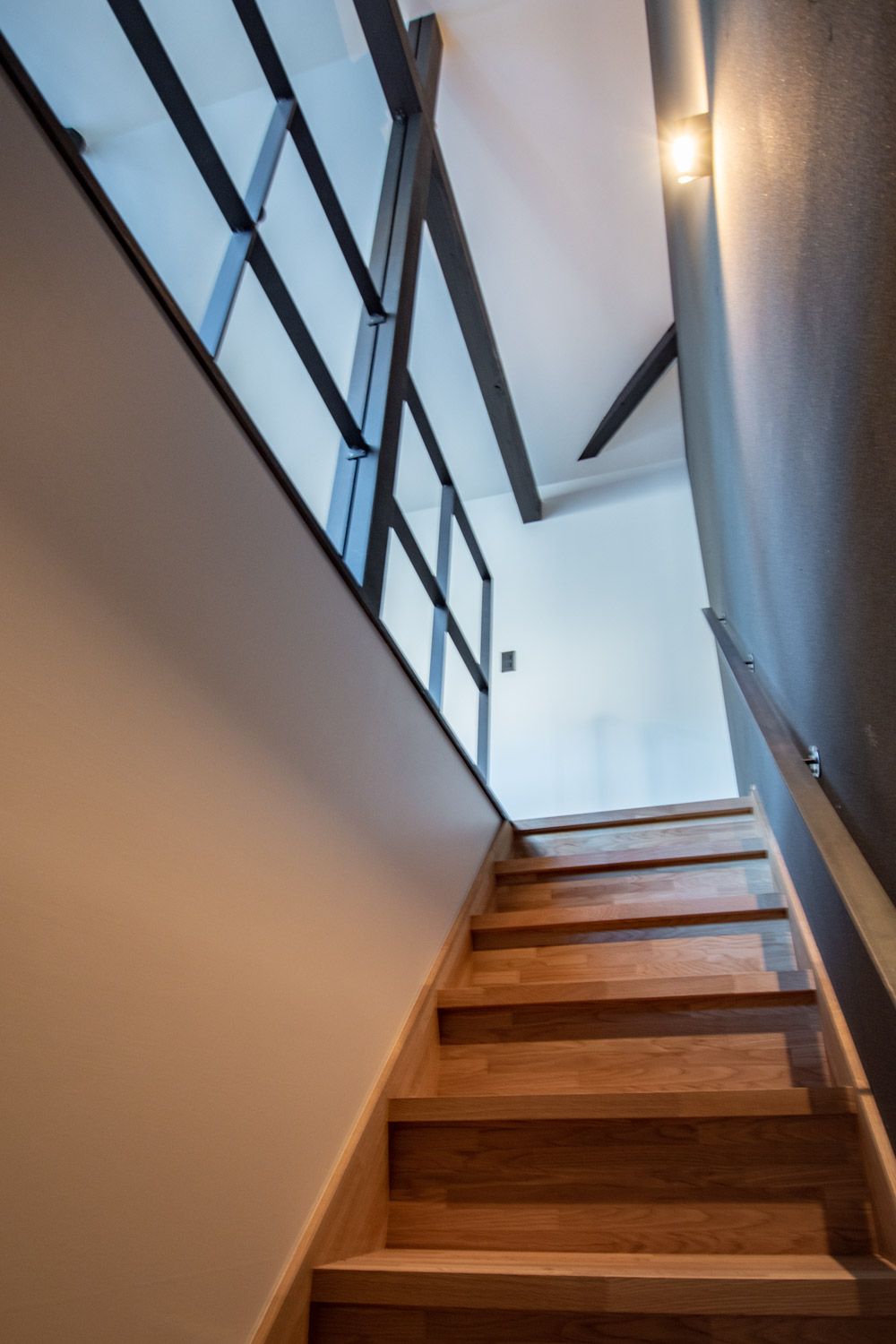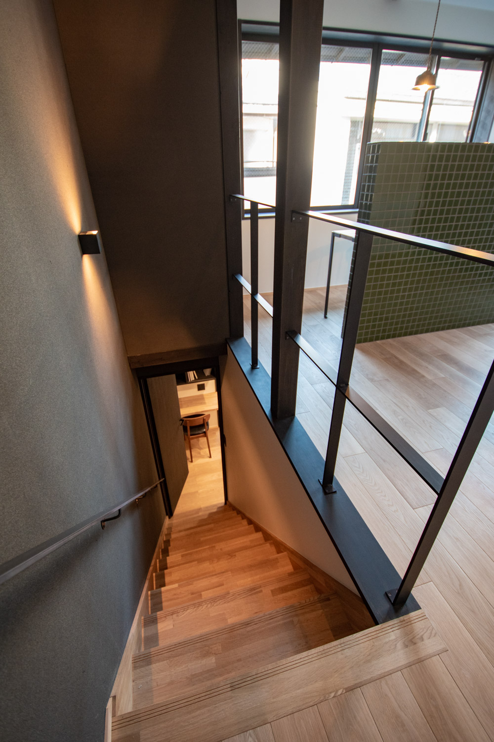来客に対応しにくい、仕事とプライベートの境界線が曖昧になりがちなどSOHOのデメリットを解消するため、1階のパブリックゾーンと2階のプライベートゾーンで空間が切り替わります。