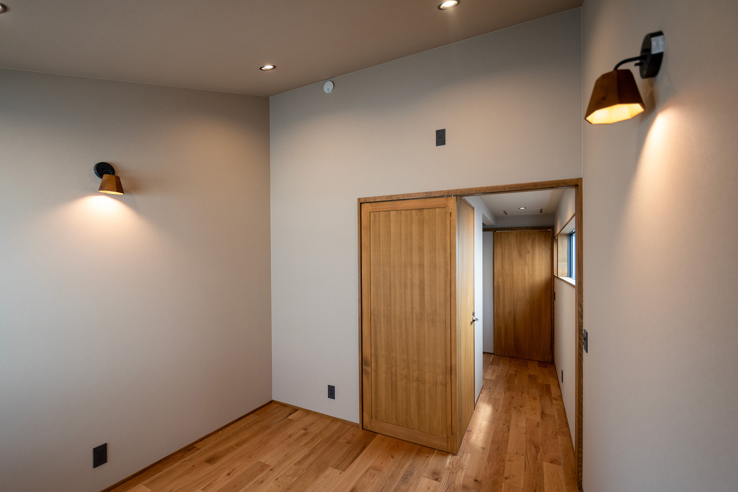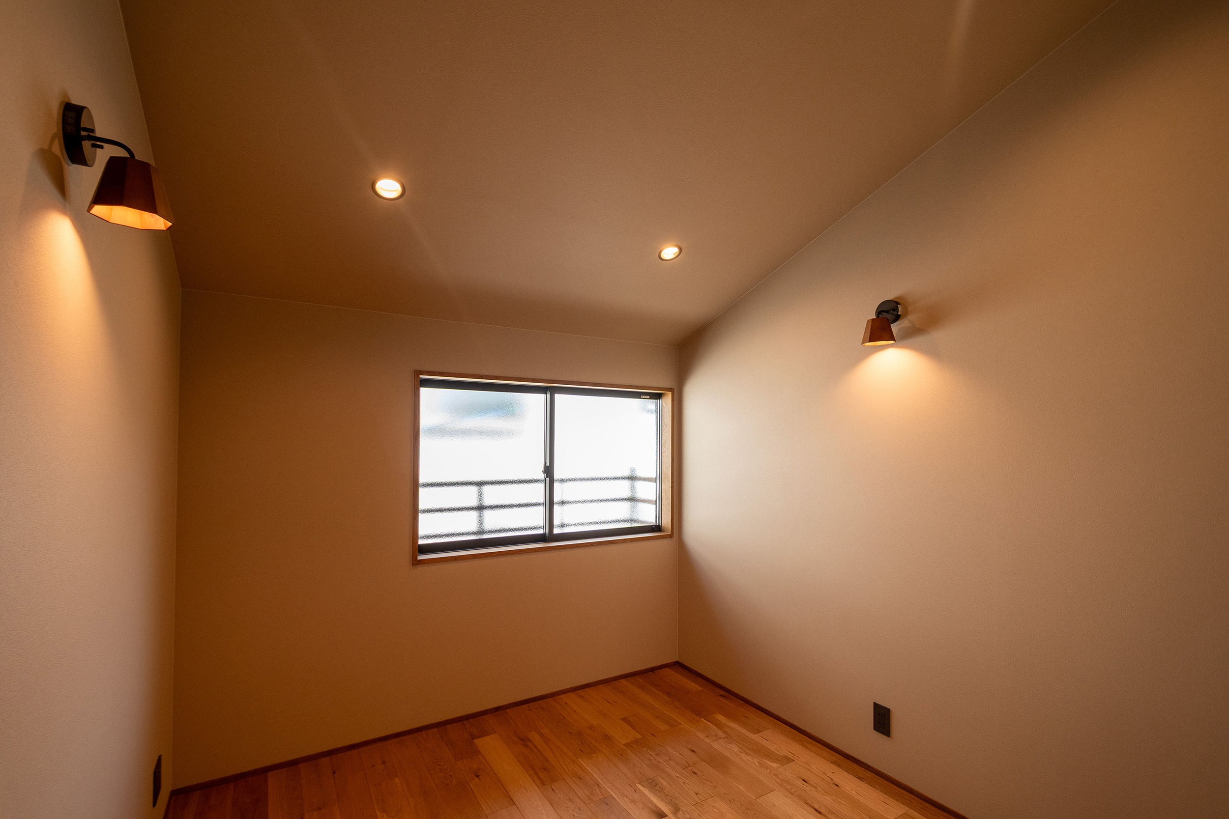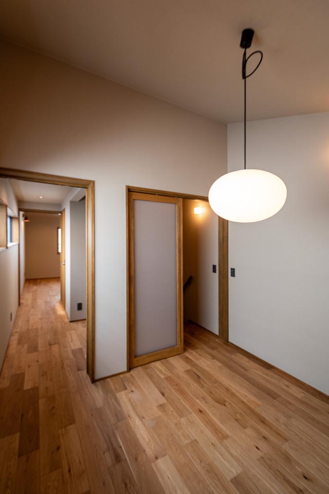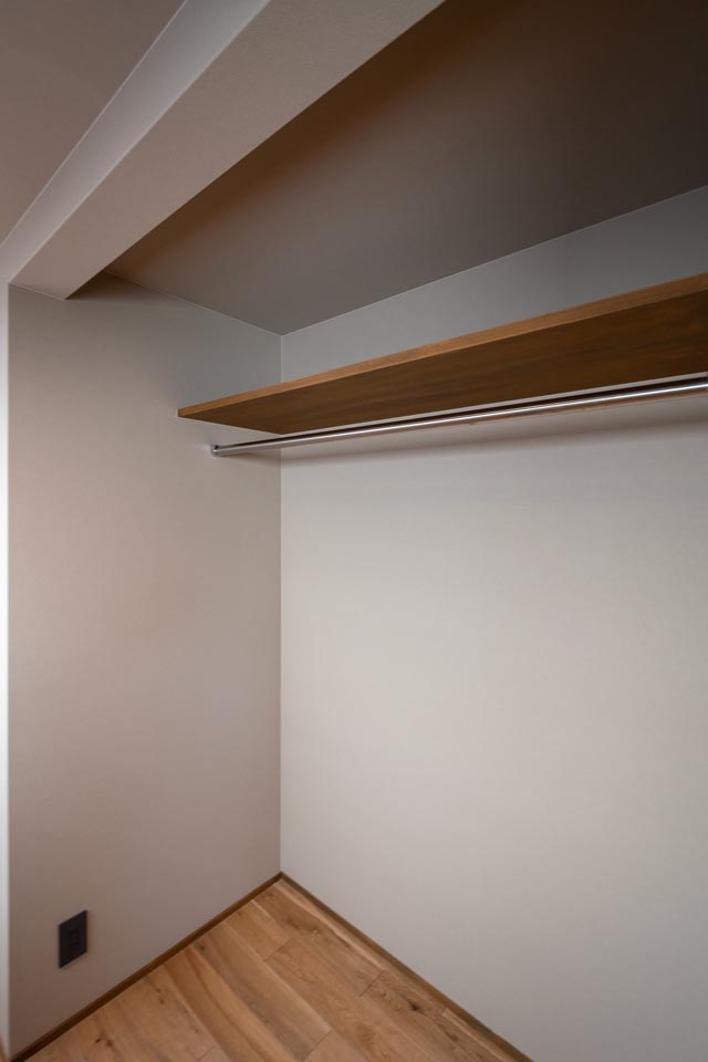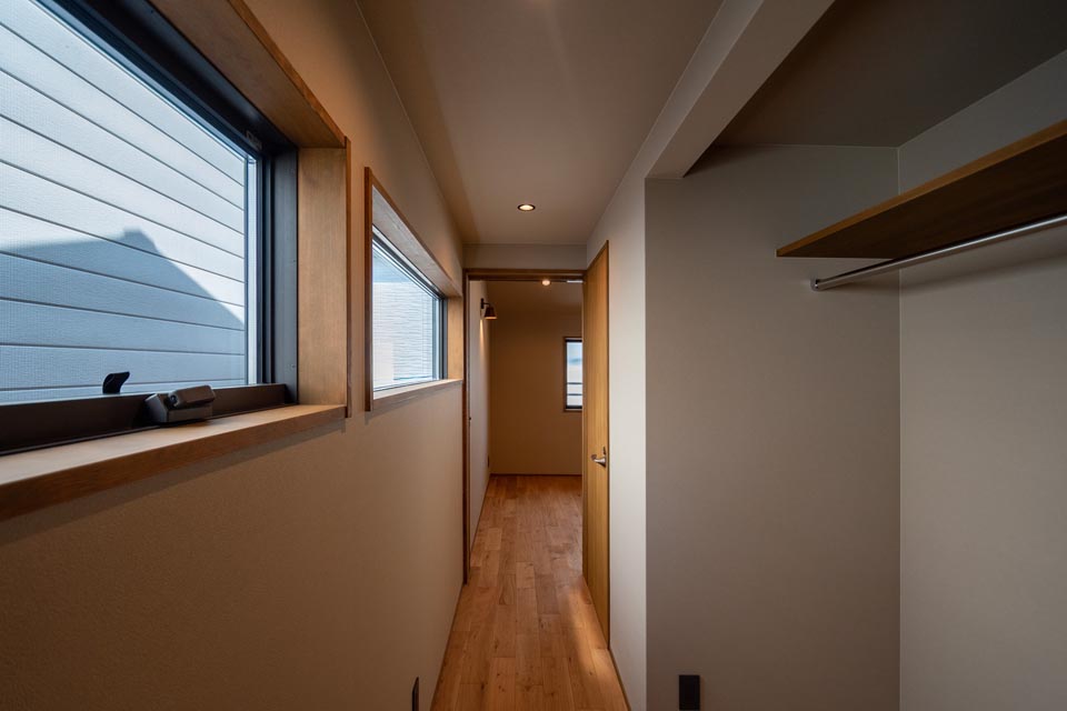 2階には2部屋をご用意し、廊下に面した収納には衣類をたっぷり掛けていただけます。南側にお庭を配置しているため、室内は明るく、日当たりも良好です。