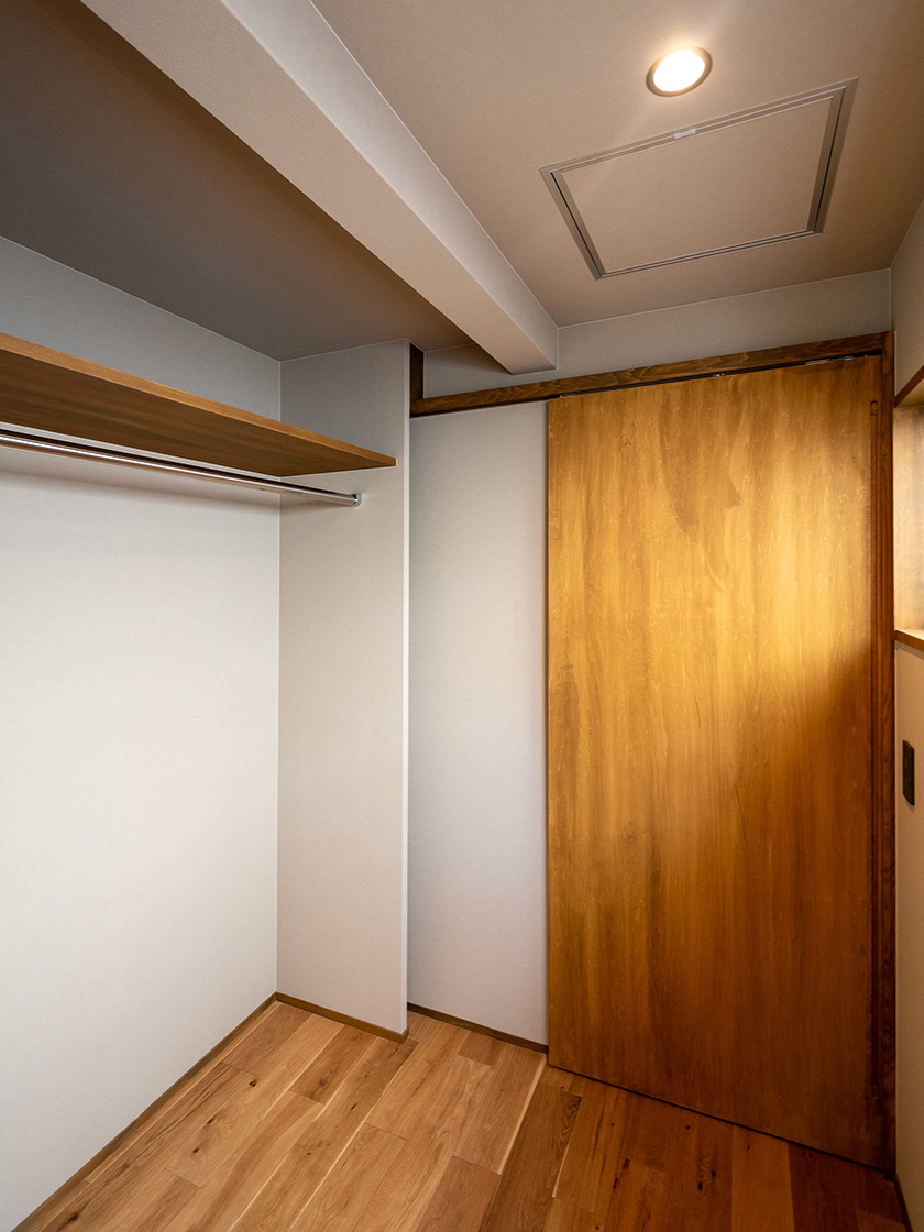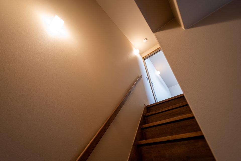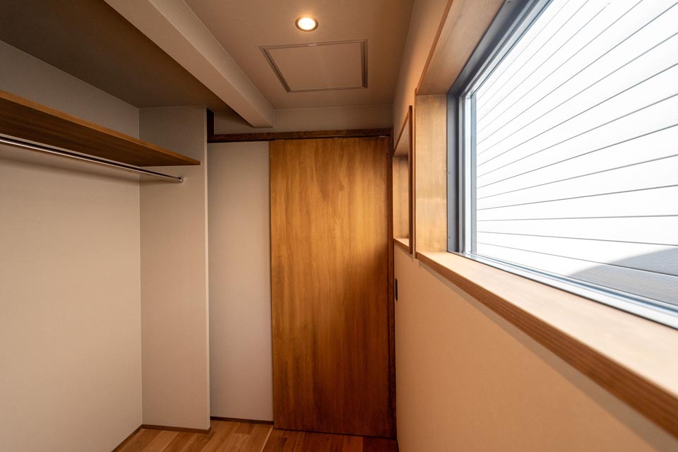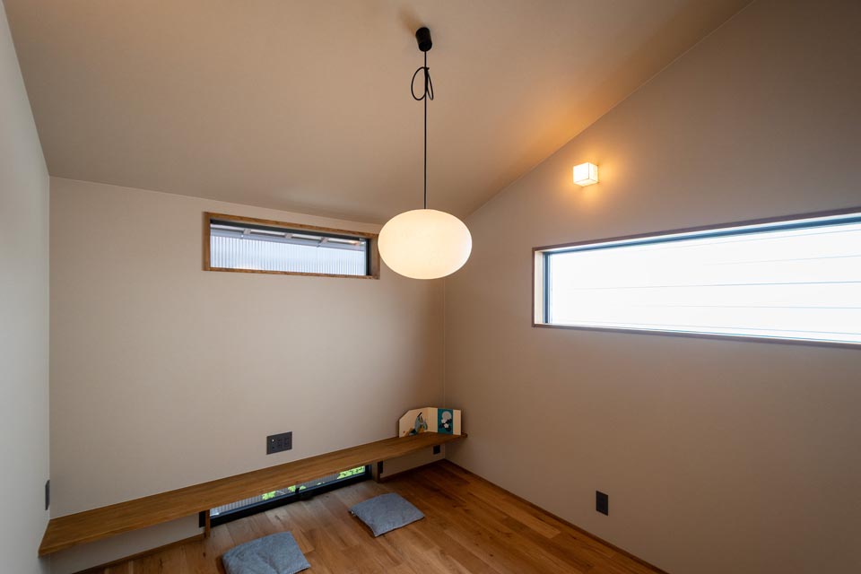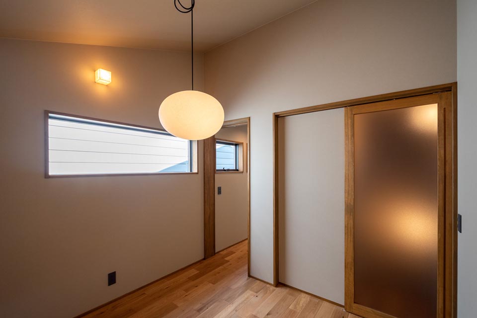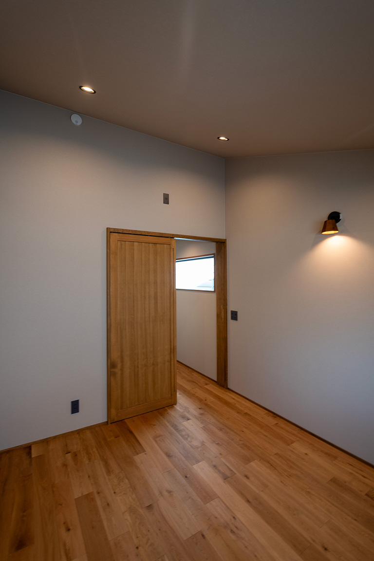2階には2部屋をご用意し、廊下に面した収納には衣類をたっぷり掛けていただけます。南側にお庭を配置しているため、室内は明るく、日当たりも良好です。