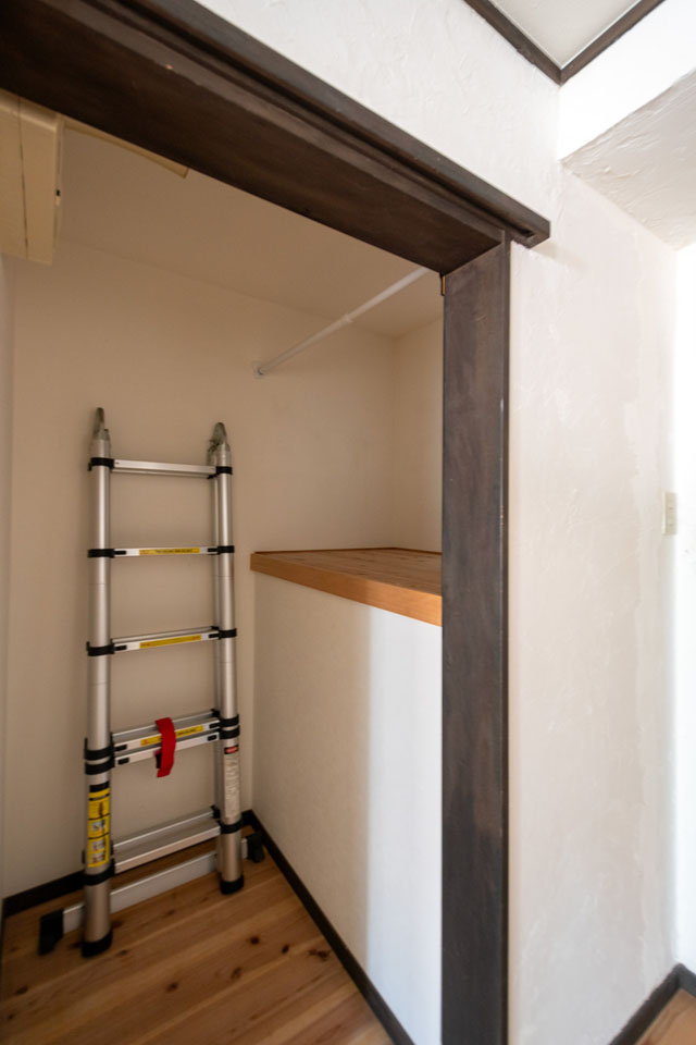玄関を入ってすぐの造り付け棚や上部収納、和室の収納など、使いやすさも考えられています。