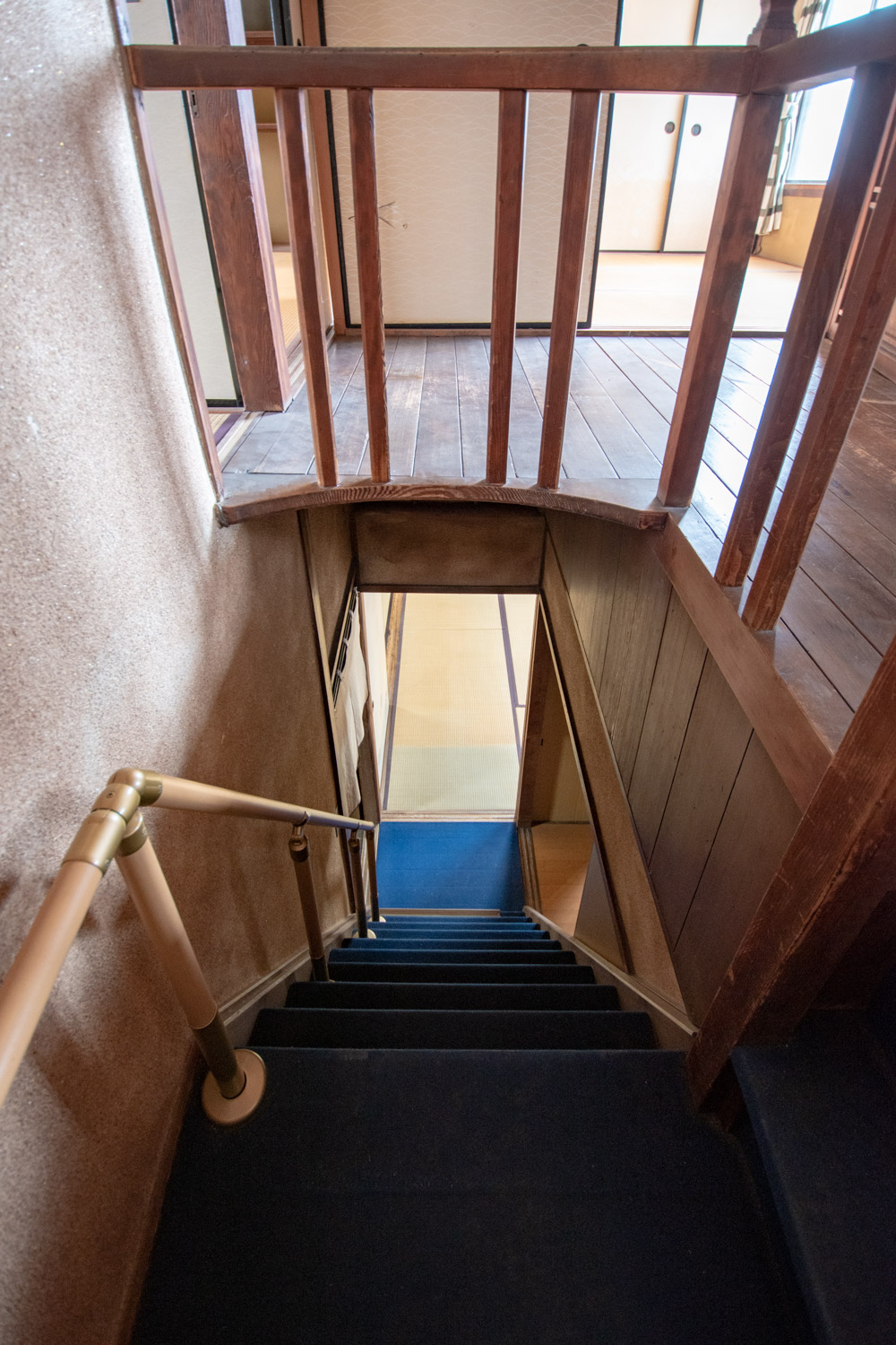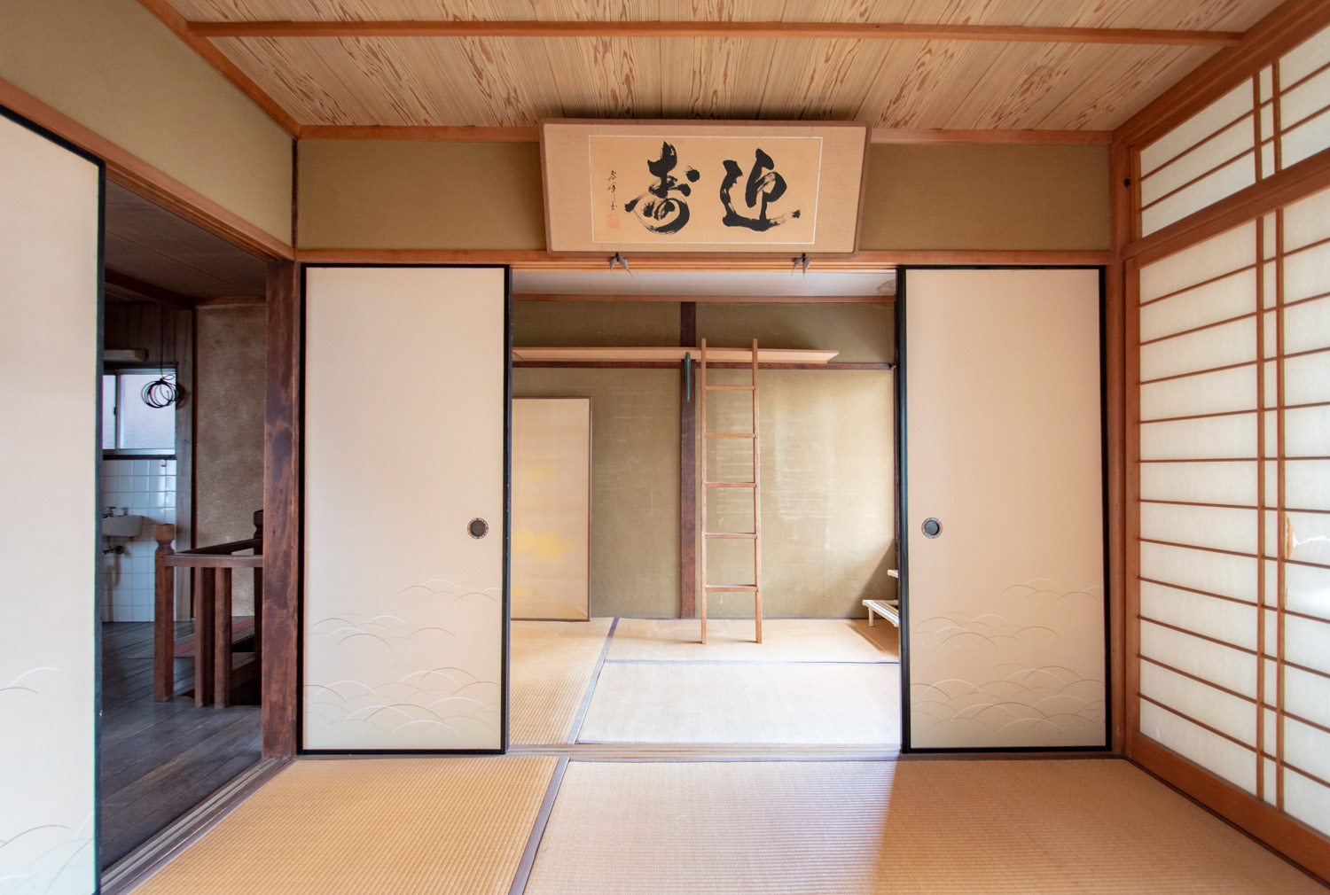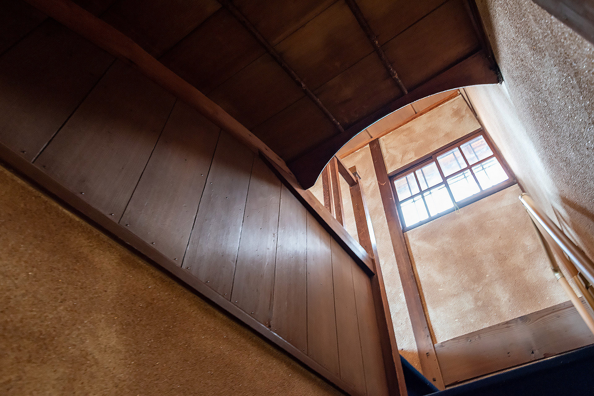 表構えの杉板の塀と冠木門(かぶきもん)をはじめ、室内では木目調の階段、板天井、透かし彫りの欄間など古い質感の味わい深い意匠を凝らした造りが随所に見受けられます。