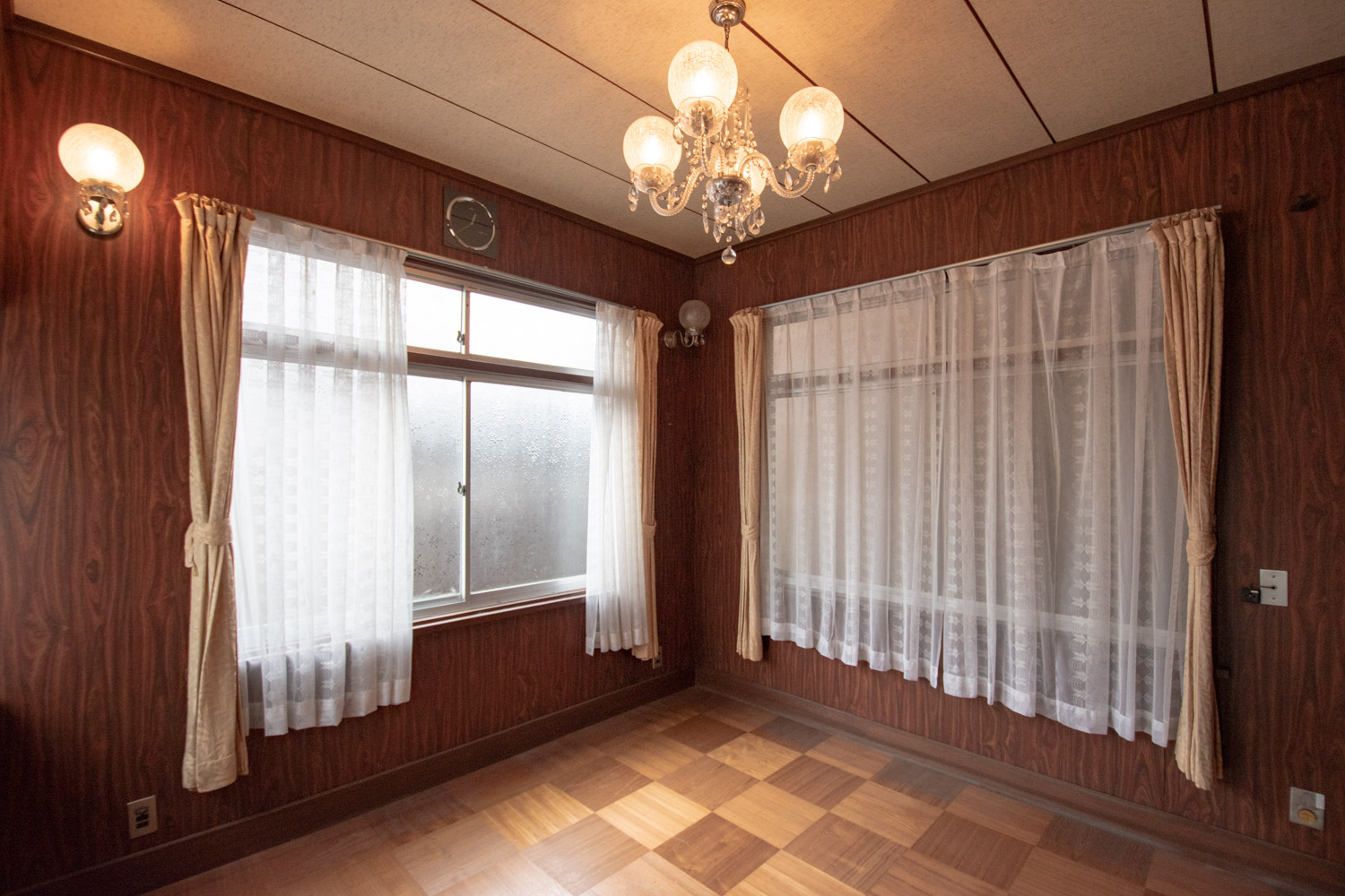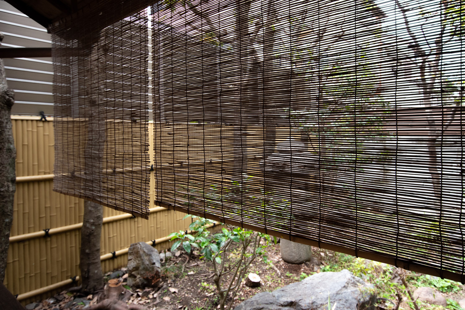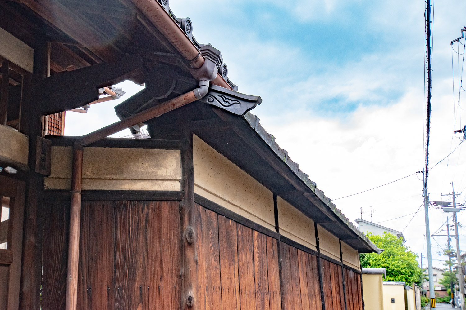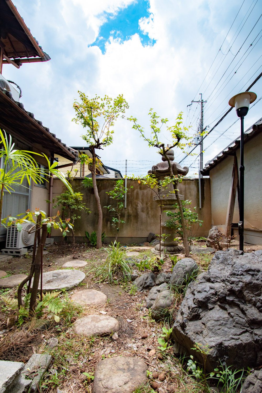 表構えの杉板の塀と冠木門(かぶきもん)をはじめ、室内では木目調の階段、板天井、透かし彫りの欄間など古い質感の味わい深い意匠を凝らした造りが随所に見受けられます。