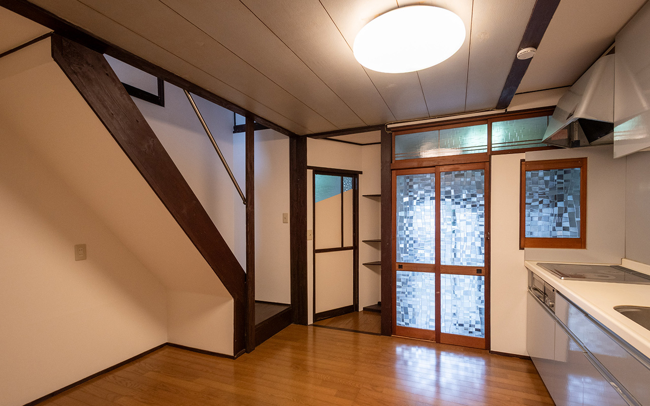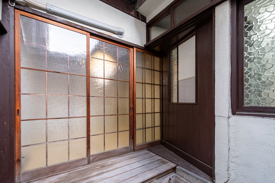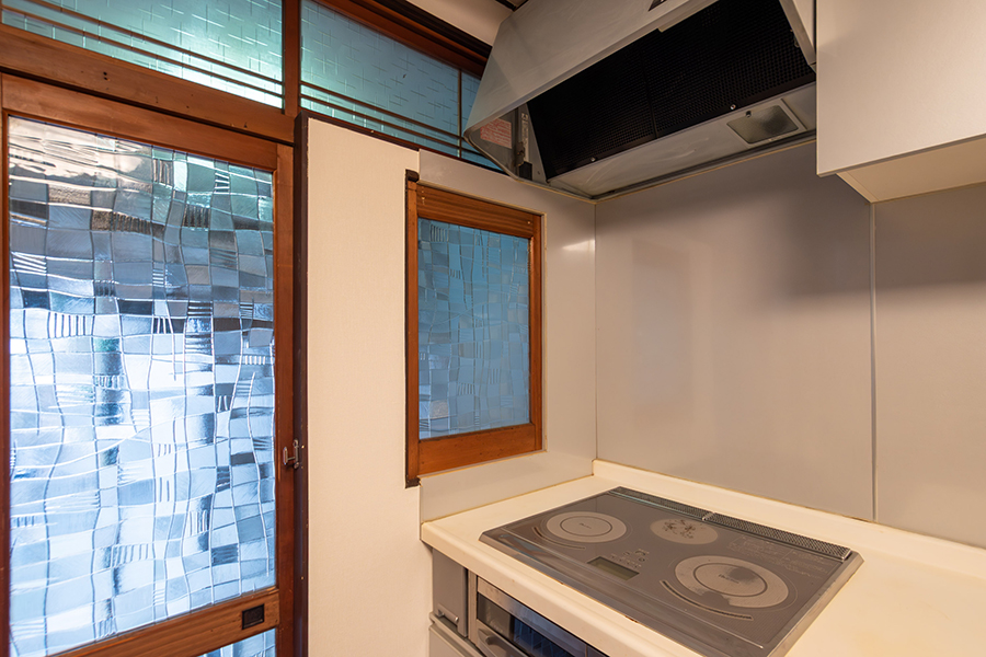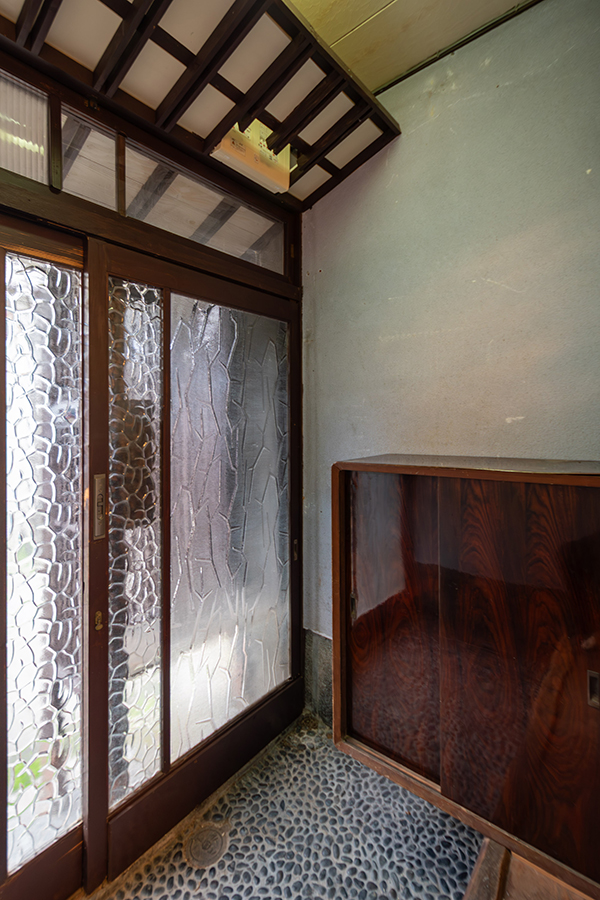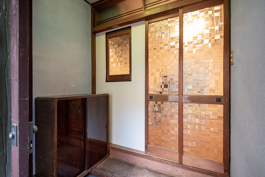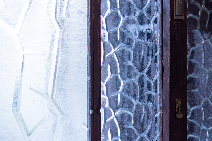 室内には、可愛らしい模様のすりガラスやレトロな型板ガラスが随所に残され、どこか懐かしい雰囲気を漂わせています。