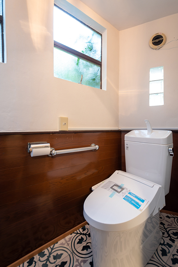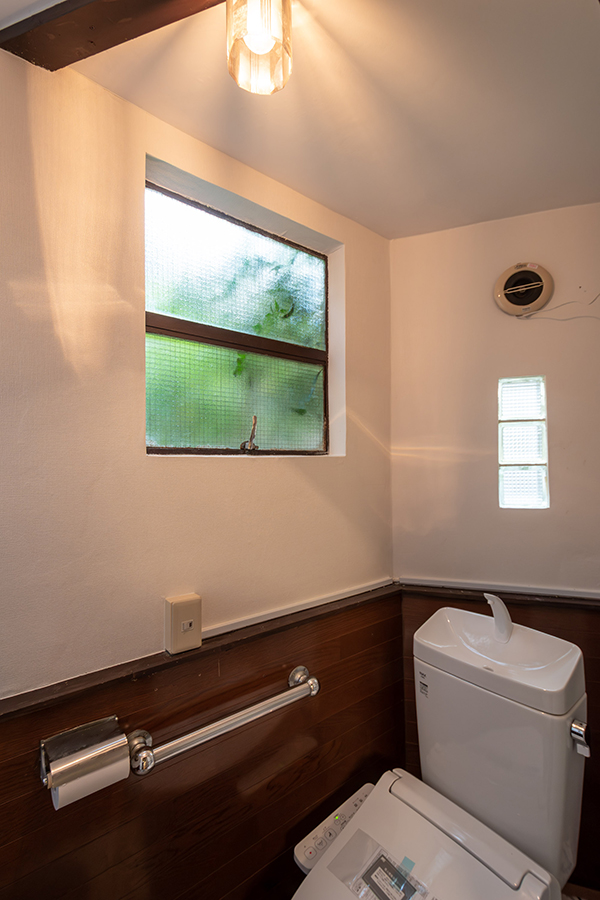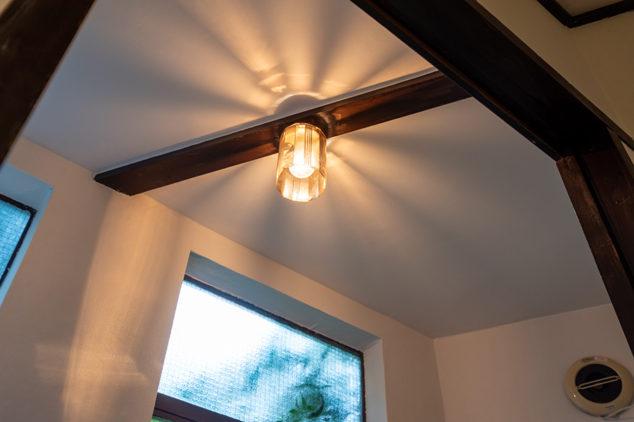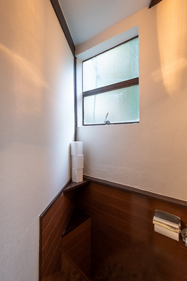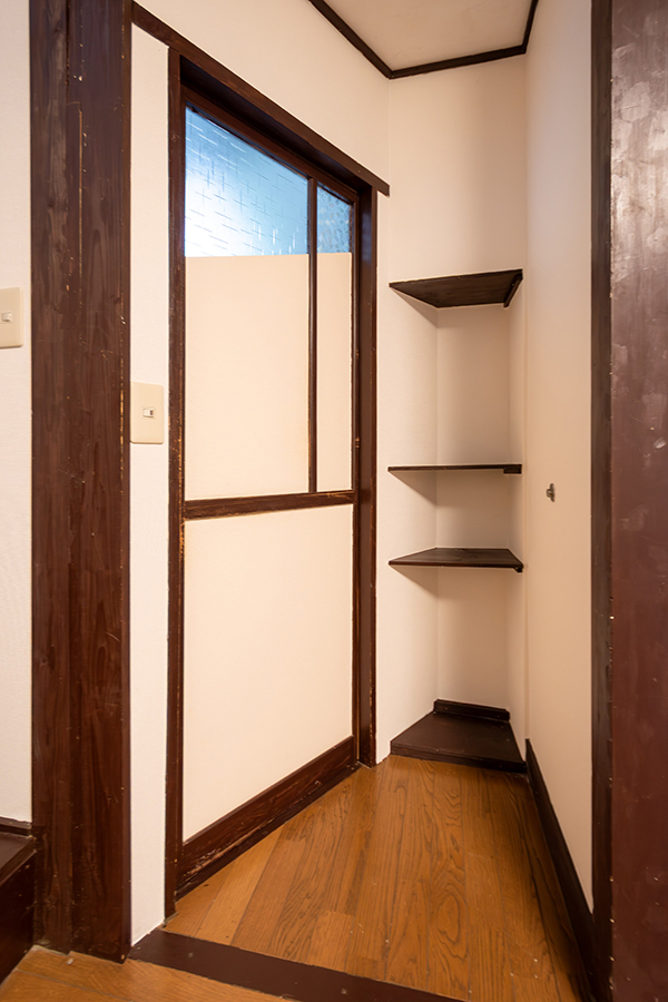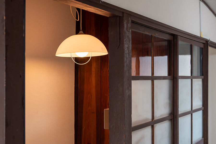室内には、可愛らしい模様のすりガラスやレトロな型板ガラスが随所に残され、どこか懐かしい雰囲気を漂わせています。