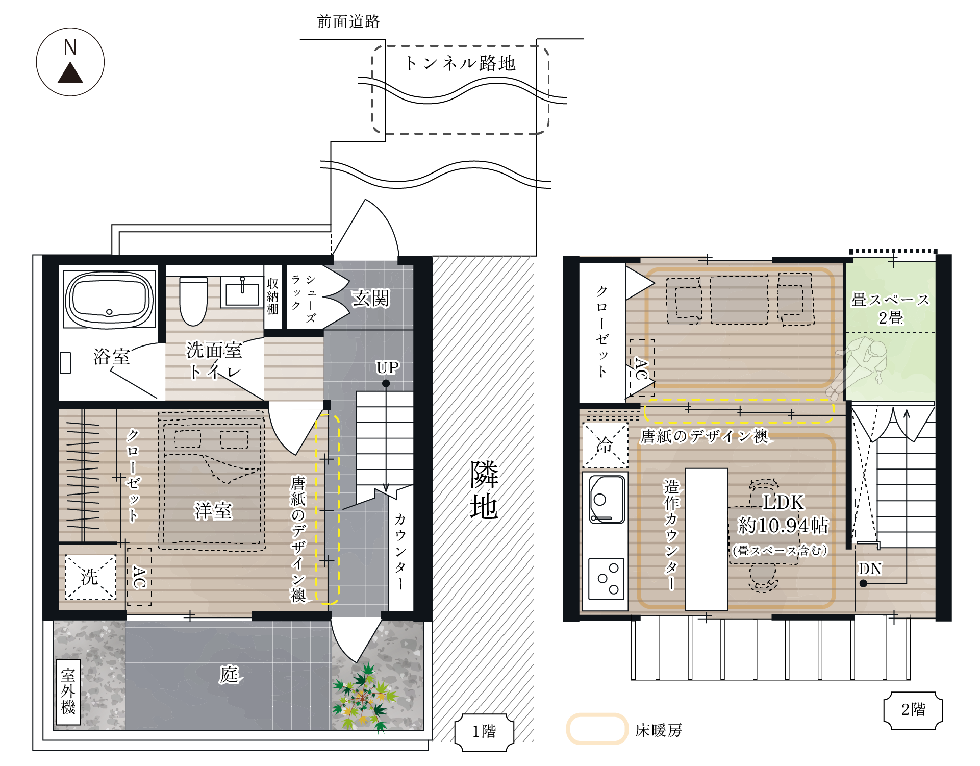 | 専有面積 | 1階:約26.74m² 2階:約26.74m² 延べ:約53.48m²(約16.17坪) |