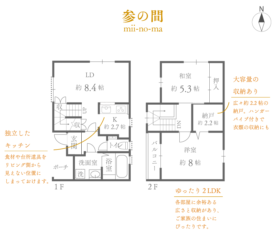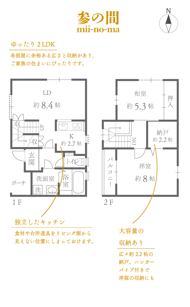 広さ:2LDK + 納戸 / 専有面積:1階:約35.08m² 2階:約33.33m² 延べ:約68.41m²(約20.69坪) 賃料:167,000円 / 敷金:賃料の1ヶ月分 / 礼金:無 / 引渡し:2026年2月末以降 / 現況:空家 / エアコン:1台(設備)1台(残置物)